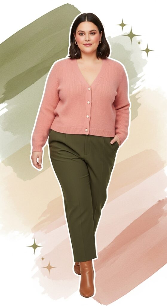 Ashley skips pairing pink with black. She reaches for softer, more unexpected neutrals—chocolate brown, oatmeal, camel, navy, and olive. The result is always more sophisticated and wearable than I would have imagined.