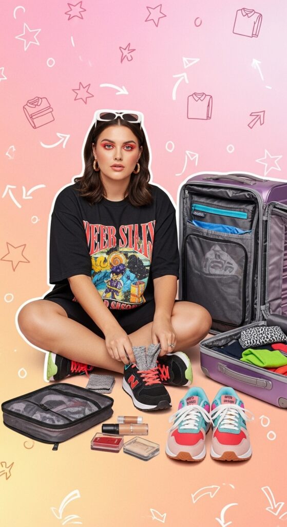 Business trips aren’t all meetings and networking. At the end of a long day, soft pajamas or your favorite lounge set are small luxuries. A cozy tee or sweater helps you wind down and recharge. If there’s time for a quick workout or a stroll, stretchy sneakers and a breathable top make it easy to move and clear your mind.