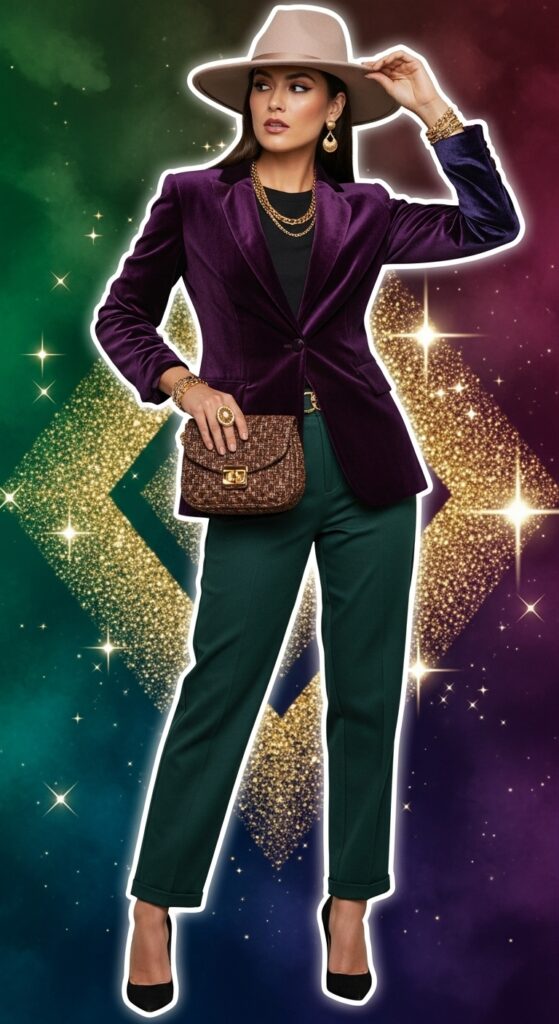 A velvet blazer offers instant holiday glamour, whether in rich burgundy, emerald, or classic black. Wear it with straight-leg jeans or tailored pants for a look that’s both polished and comfortable. A wide-brim wool hat and gold jewelry lend a touch of retro charm, turning heads without feeling costume-like.