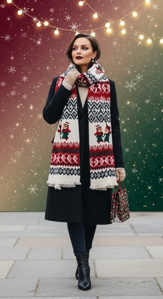 This combination never feels forced. Whether you’re stopping for gingerbread or weaving through crowds, a classic coat and cashmere scarf give you warmth and quiet confidence that never goes out of style.
