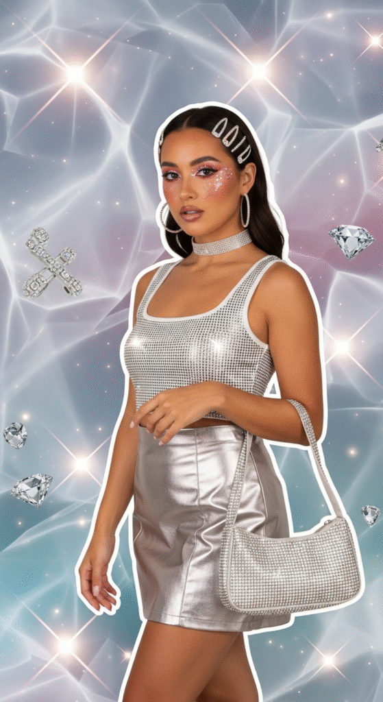 Nothing says “night out” quite like rhinestone-studded hair clips, sparkling chokers, or tiny baguette bags. Accessories in the Y2K era often outshone the clothes themselves. Reach for a pair of oversized hoops or a shimmering clutch, and watch as even the most understated outfit feels party-ready. The right accessory can change your mood, letting you channel pop star energy, if only for the night.