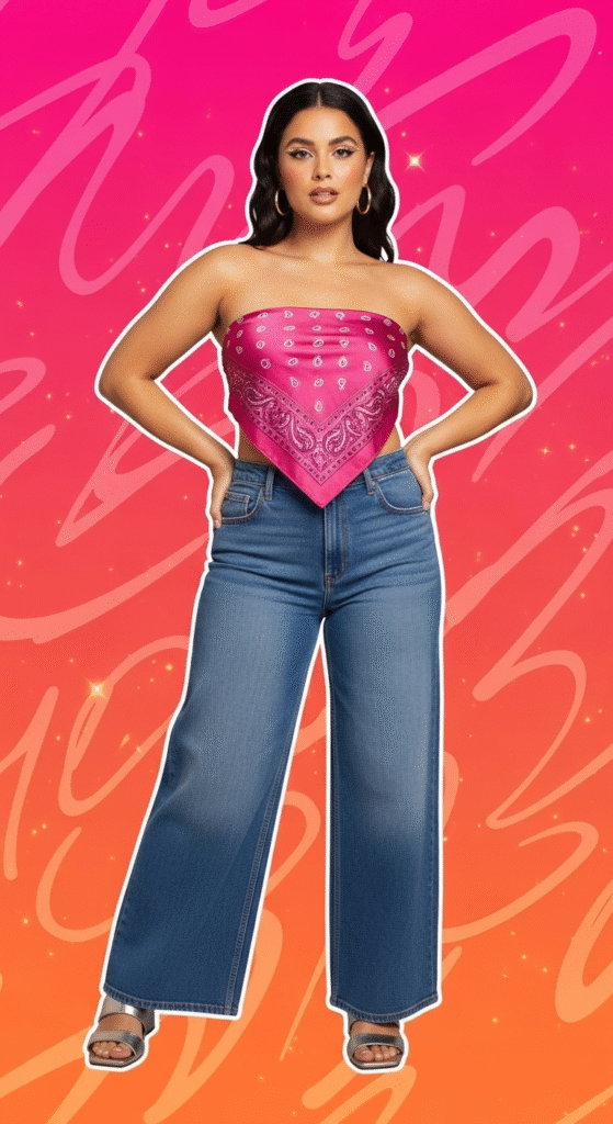 Bandana tops made waves in the Y2K era, and they’re back in bold prints and silky fabrics. Whether tied at the back or styled as a halter, these tops exude a certain confidence. Style with high-waisted jeans and metallic sandals, or layer over a mesh long-sleeve for chillier evenings. Sometimes, a simple square of fabric is all you need to turn heads.