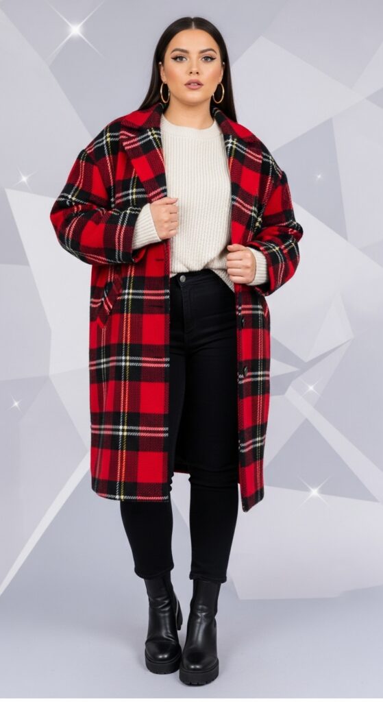 Bold plaid—especially in classic buffalo check or oversized tartan—instantly makes outerwear the star of the outfit. Keep the layers underneath simple to let the coat do the talking. Black jeans, cream sweaters, or a fitted midi skirt all work underneath a plaid piece that feels both rustic and urban. Add a crossbody bag or leather gloves to complete the look.
