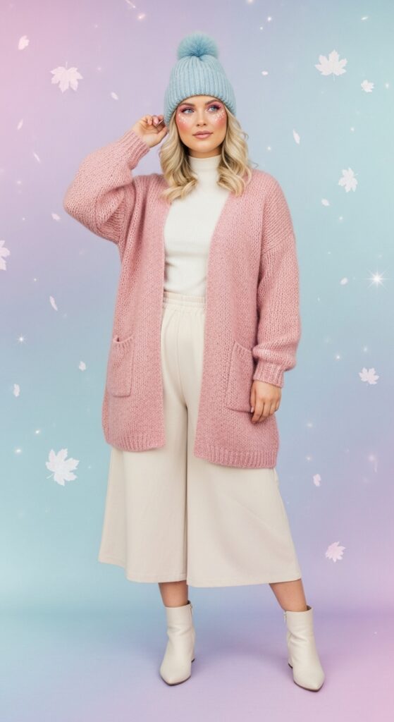 Go for pastels in plush textures—mohair, cashmere, or velvet. Mixing pastels with jewel tones (like plum or emerald) keeps your look grounded and grown-up.