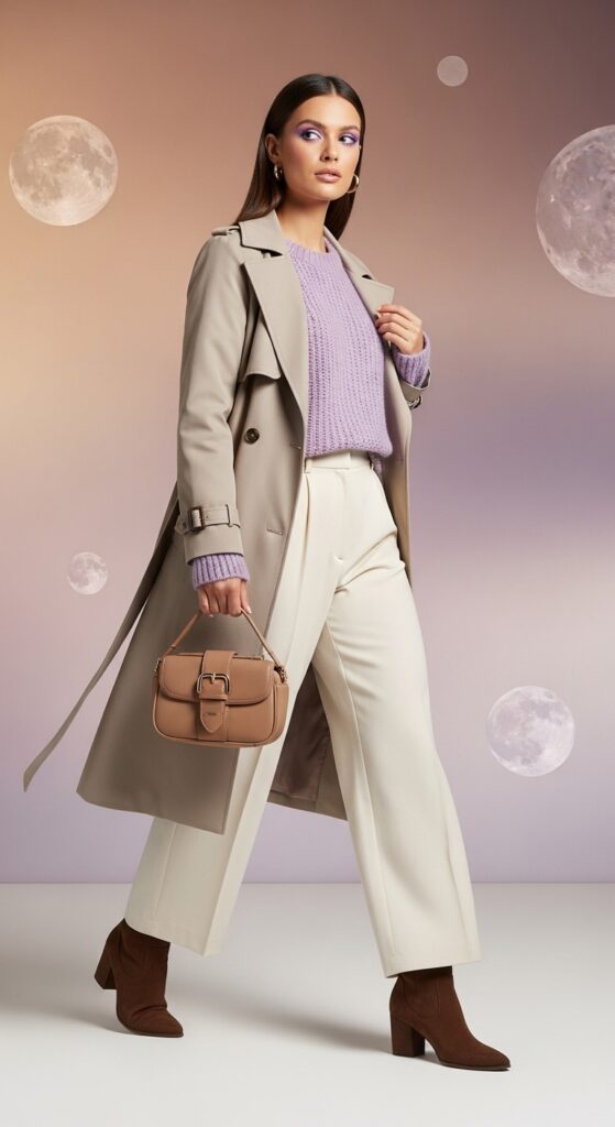 Use this as your base: think trench coats, chunky knits, or sleek trousers. Layer with white, chocolate brown, or lilac for a modern feel.