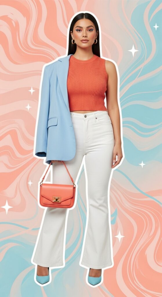Try a coral knit over white denim, or tuck a tomato cream tee into high-waisted trousers. This shade flatters many skin tones, especially with a hint of bronzer.