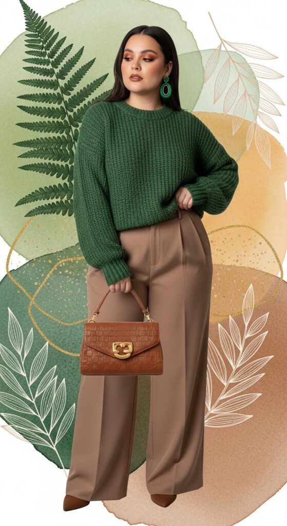 Pair with brown boots or a tan bag to keep the look natural. Add fern green via jewelry—think malachite earrings or a stone pendant.