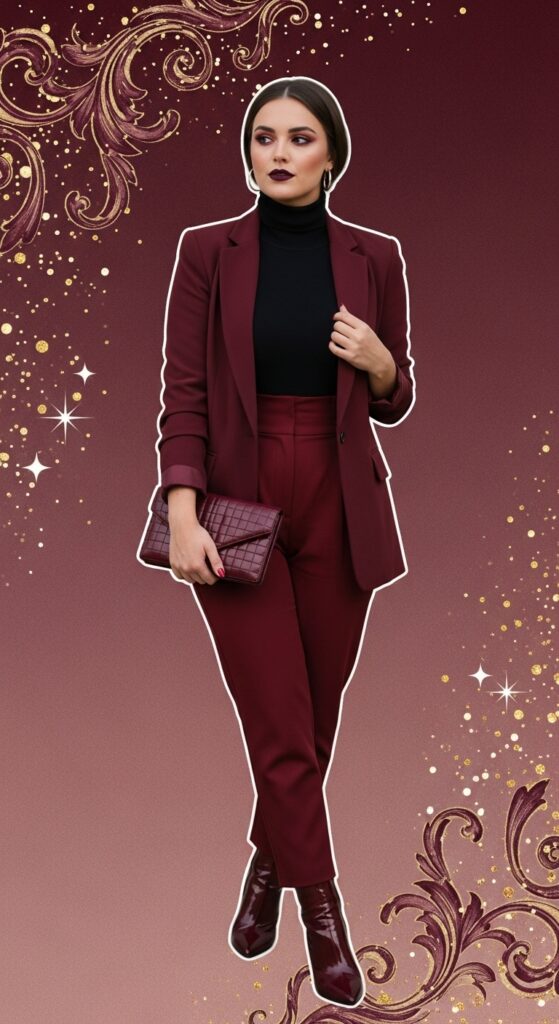A tailored blazer in burgundy looks sharp with navy or camel. Oxblood leather boots or a glossy clutch add a touch of luxe to everyday basics.