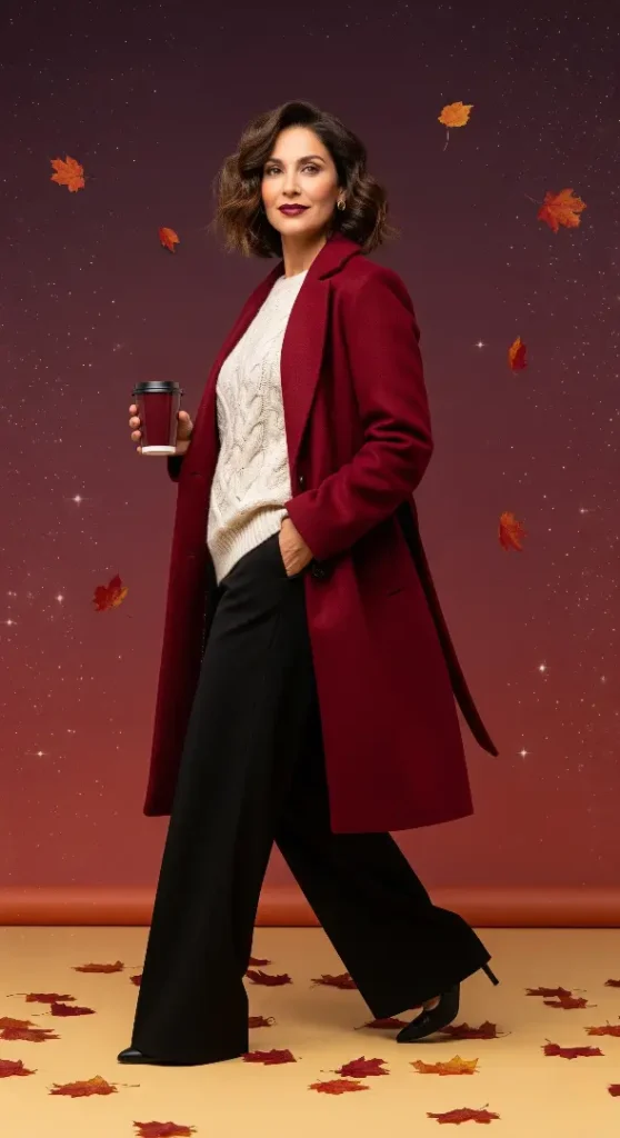 Red for autumn always feels bold, but this season’s Scarlet Smile shade is deeper, almost wine-like, with just enough drama to make every outfit memorable. On runways, this color read as both classic and current, lighting up outerwear and cozy knits.