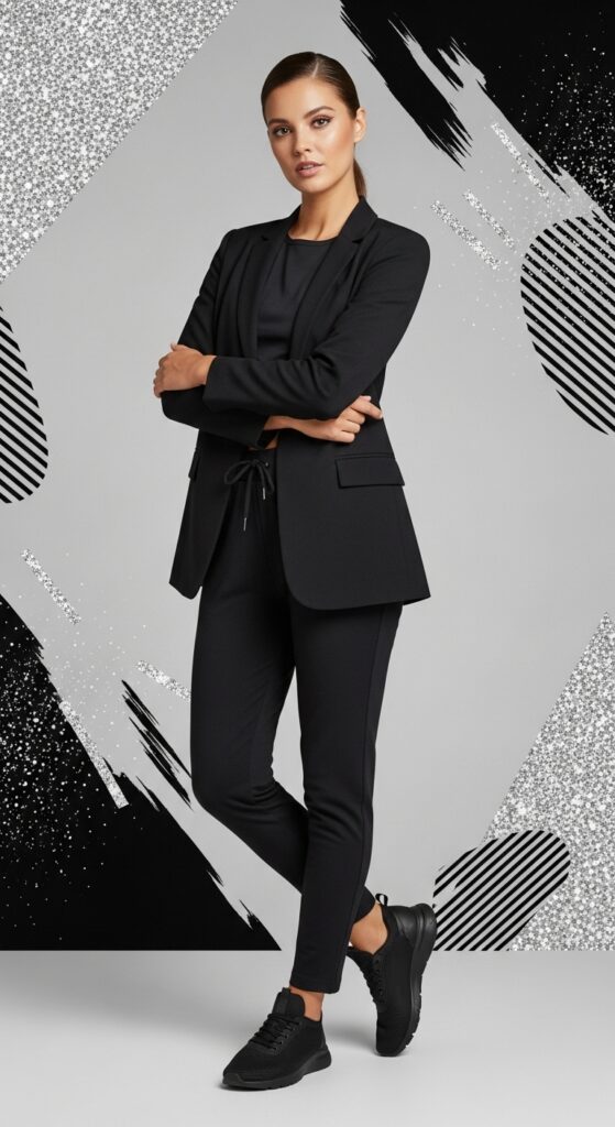 Once, after a late night, I arrived at work in a faded tee and leggings. I threw on my navy check blazer, swapped sneakers for pointed flats I kept at my desk, and no one guessed I’d been in my running gear fifteen minutes earlier.