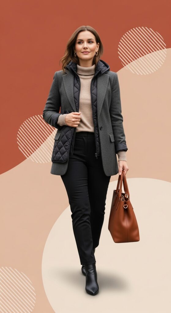 The right coat or jacket is the final piece in your layering story. Instead of heavy puffer coats or anything too padded, choose sleek, structured outerwear that fits comfortably over your layers. A classic trench, belted wool coat, or tailored peacoat can tie your look together and carry you from the sidewalk to the boardroom.