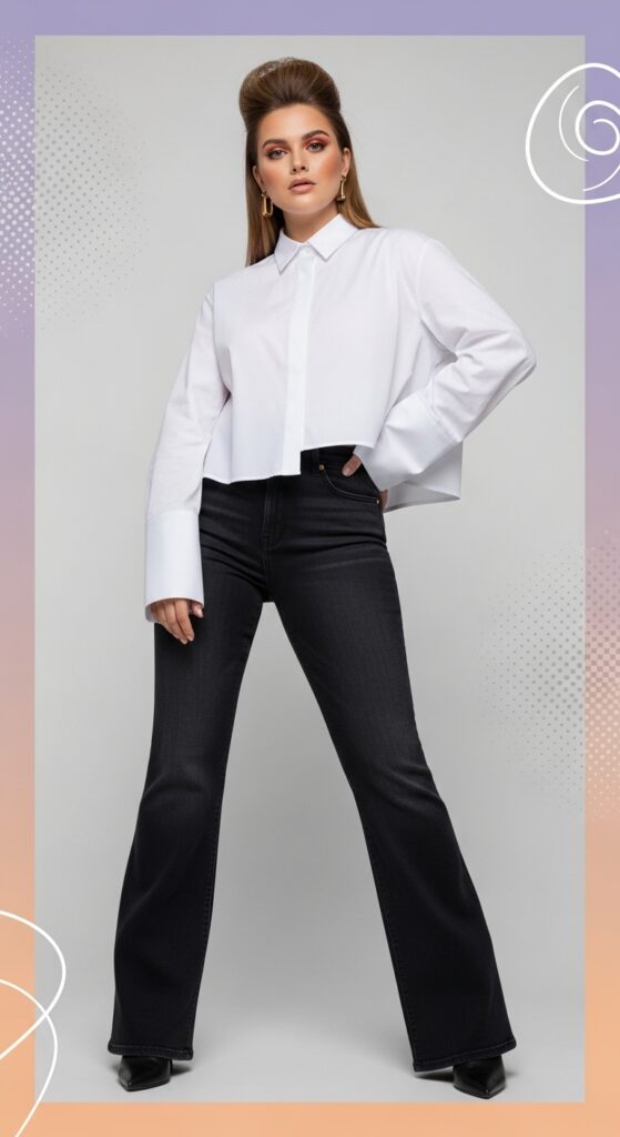A crisp white button-down never fails to impress, especially when tucked into high-rise jeans. This combination feels fresh, approachable, and endlessly versatile. The high-rise cut flatters the waist, while the shirt adds structure.