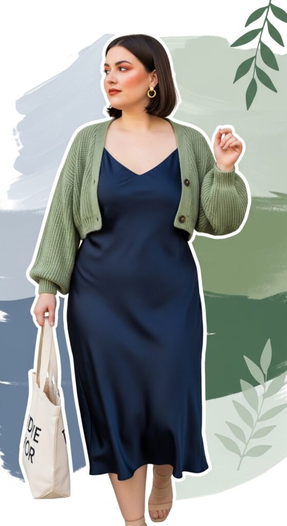 A slip dress with a modest neckline transitions beautifully into workwear when layered with a cropped cardigan. This pairing softens the lines of the dress while adding a cozy, approachable vibe. Choosing a slip in matte satin or crepe keeps the look professional.