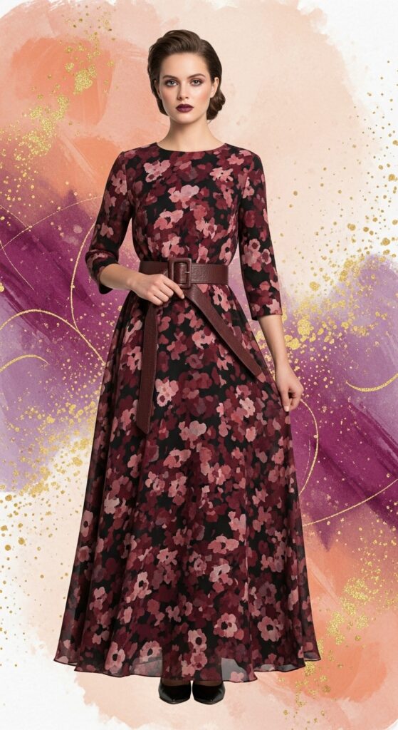 A printed maxi dress serves as a canvas for color and creativity in the office. Cinched at the waist with a slim belt, the dress flatters the figure and keeps the look tailored. Florals, abstract patterns, or geometric motifs work well, depending on personal style.