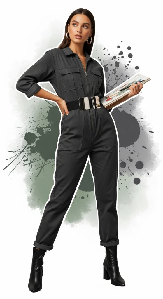 Layering with a cropped blazer or printed scarf adds warmth and personality, ensuring the outfit is adaptable to both work and after-hours plans. The jumpsuit becomes a true wardrobe workhorse for busy creative women.