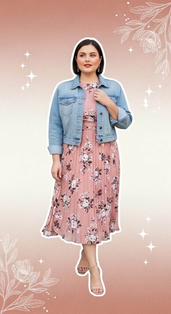Layering with a structured blazer or fitted cardigan brings the outfit into professional territory. Shoes in a neutral tone, such as tan or black, keep the print from feeling overwhelming.
