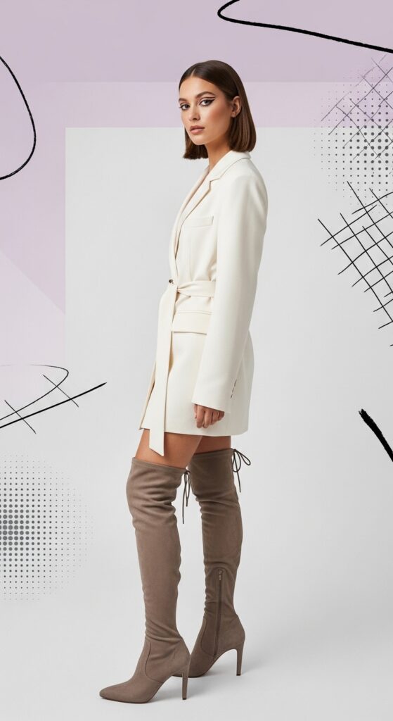 A blazer dress is the definition of modern sophistication. The tailored silhouette reads as professional, while the dress format feels fresh and slightly daring. Choosing one in a neutral shade or subtle print makes the outfit versatile for various office settings.