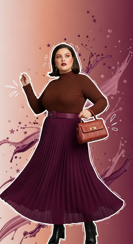 For footwear, classic pumps or heeled boots add confidence. Simple, elegant jewelry keeps the outfit from feeling too busy, letting the skirt be the statement piece.