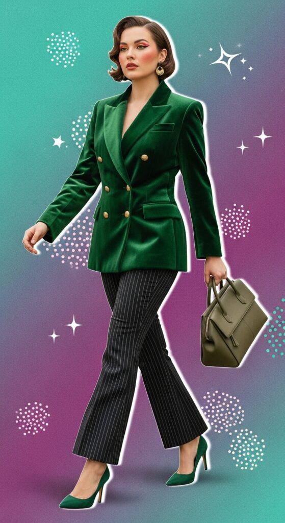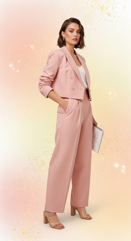 Unexpected color doesn’t need to be overwhelming. Subdued pastels or gentle earth tones offer a softer take on traditional suiting, while still reading as professional. These shades work beautifully with neutral shoes, understated jewelry, and classic handbags, ensuring the outfit feels intentional rather than loud.