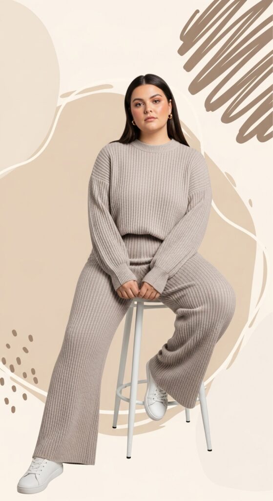 Metallic flats, a bold necklace, or a patterned scarf break up the look and prevent monotony. These sets work beautifully from fall through spring, offering warmth without bulk.