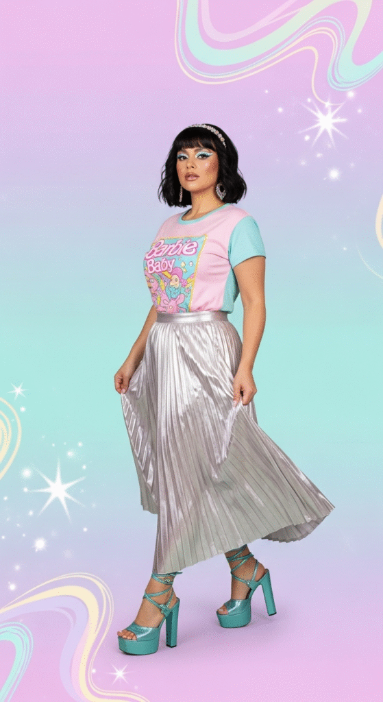 Barbiecore and Y2K remind us that fashion can be a playground. Dressing up is not just for children; it’s for anyone who wants to bring a little magic back into daily life. From glittery platform shoes to cartoon-print tops, these styles encourage fun and fantasy at any age.